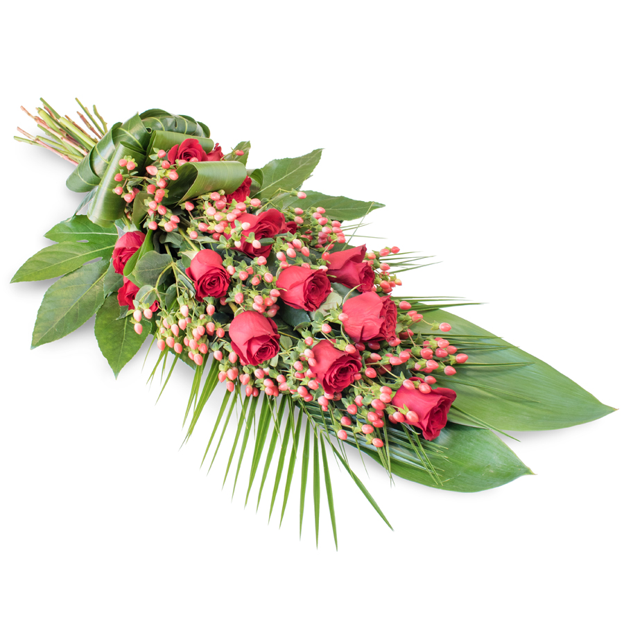 - Vibrant Reds: Bold red roses paired with rich hypericum for a striking appearance.